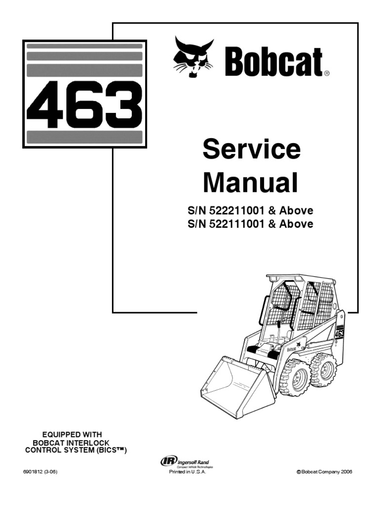 6971762 Bobcat 463 Skid Steer Loader Service Repair Manual Download S N 522211001 Above S N 522111001 Above
